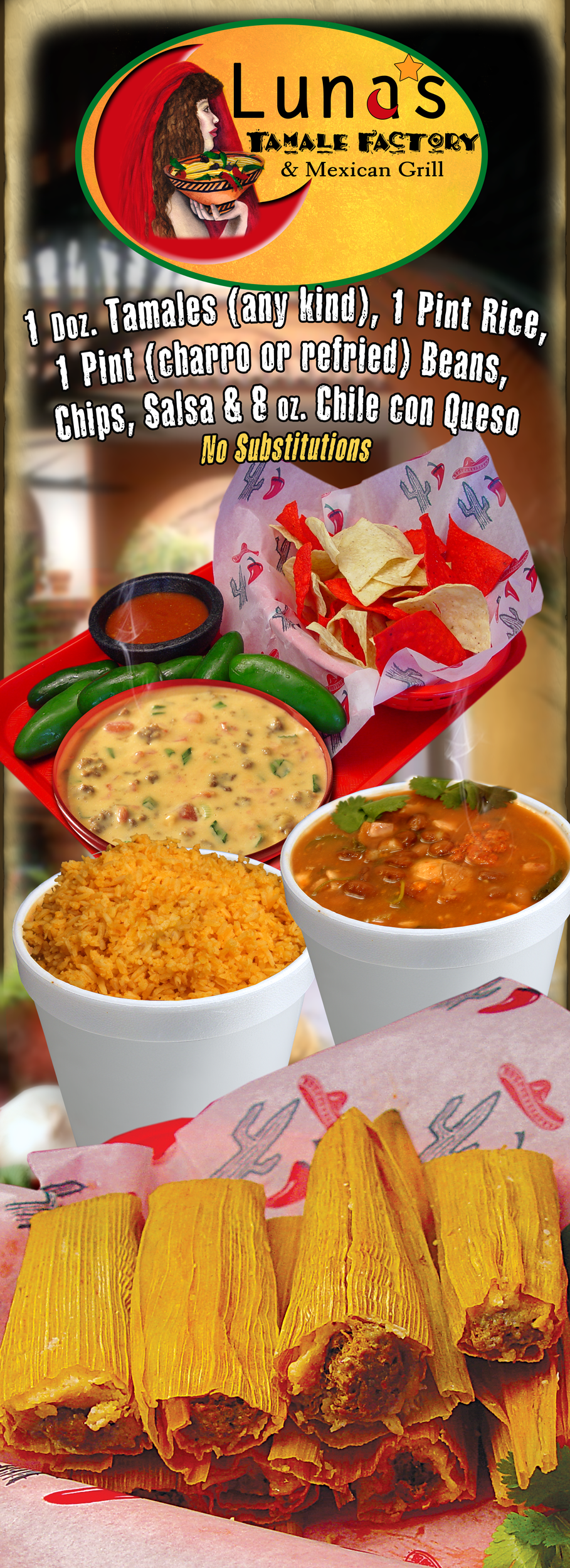 Our specialty? Tamales made the Luna’s way — fresh, flavorful, and unlike any other. Guests have been coming back for over 25 years to enjoy our unique style of tamales along with classic Tex-Mex dishes that always hit the spot.